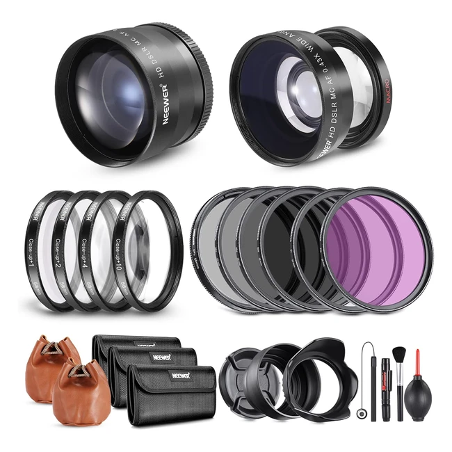 Kit de Lentes y Filtros Neewer 58mm Gran Angular/Teleobjetivo 22x - Macro 12410 - UVCPLFLD - Canon Nikon Olympus Panasonic Fujifilm