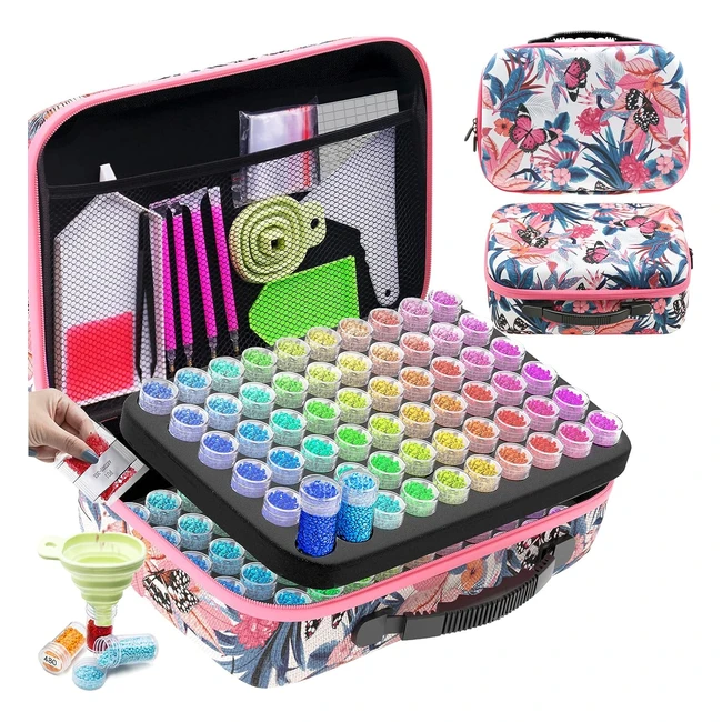 ¡Todo en un estuche! Organiza tus ejercicios de pintura de diamantes con este kit de 120 ranuras. Incluye base de espuma, tapa de rosca y bolsillo de malla. Cambiador de juego con embudo de silicona plegable. Cómodo de usar, transportar y almacenar. ¡Dile adiós a las transferencias desordenadas! Herramienta funcional y práctica con bolígrafo y colocador de taladro. Etiqueta de color para organizar y encontrar tus diamantes fácilmente. Bandeja y cera incluidos. Diseño portátil y ligero. ¡Haz arte de diamantes en cualquier lugar! Gran capacidad y multiusos. #pinturadediamantes #arte #organización