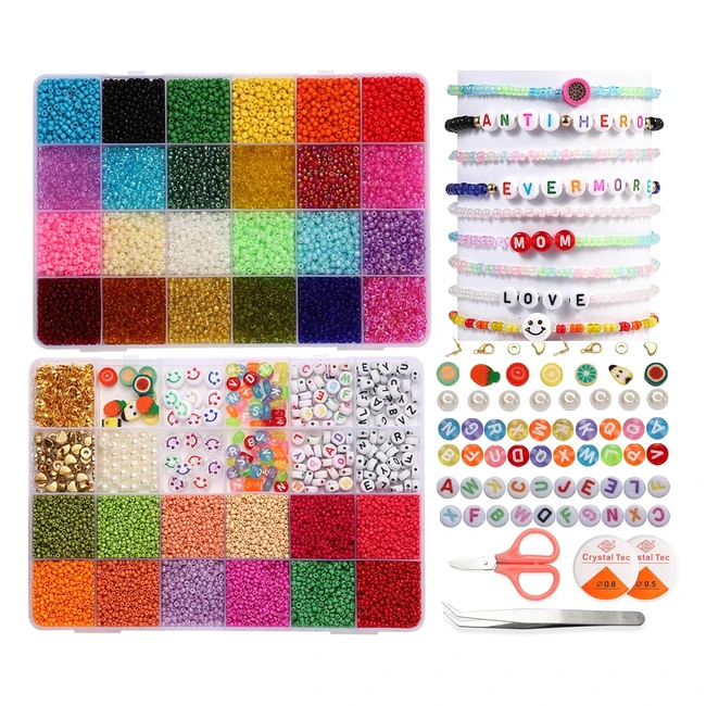 -5%Perles de rocaille 3mm et 2mm, verre durable et incassable. Idéal pour bijoux DIY. Convient aux enfants et aux professionnels. Kit complet avec perles, pendentifs et accessoires. Créez des bijoux uniques pour vous-même ou offrez-les en cadeau. Livraison rapide.