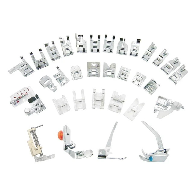 ¡Kit de 32 pies prensatela de metal duro duradero! ¡Variedad para todas tus necesidades de costura! Compatible con la mayoría de máquinas domésticas. ¡Perfecto para principiantes y experimentados seamstresses!