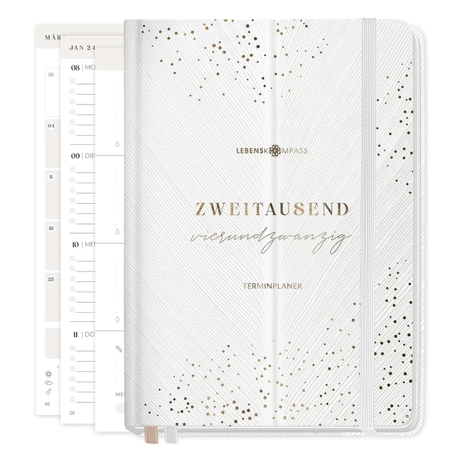 Lebenskompass Kalender 2024 Buchkalender A5 blasser wöchentlicher Kalender Tagebuch 2024 stabiler Hardcover Taschenkalender 2024 Buchkalender A5 viele Extras