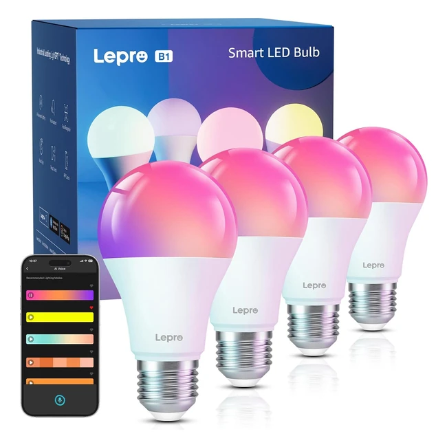 lepro b1 smart bulb e27 wifi bulb music sync voice control ai lighting 806lm 27006500k dimmable rgb color changing light bulbs