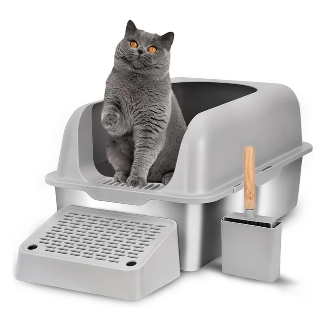 Lettiera extralarge in acciaio inox per gatti grandi o piu gatti. Design chiuso con bordi alti antiaderente a prova di perdite. Facile da pulire e mantiene la privacy del gatto. Ideale per gatti con unelevata produzione di urina. Contiene fino a 20 litri di lettiera, sufficienti per un gatto adulto per 30 giorni. Acquistala ora e assicurati un ambiente pulito e igienico per il tuo gatto!