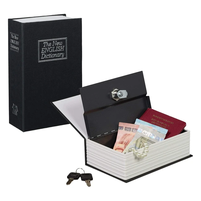 Libro Cassaforte Nero - Relaxdays 10020798_46 - Dizionario Tascabile - Acciaio - Hxlxp 18x115x55 cm