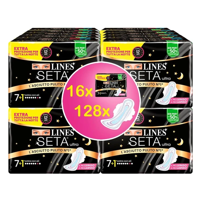 Lines Seta Ultra Extra Notte 16 Confezioni da 8 Assorbenti 128 Assorbenti - Ali ad Incastro - Assorbenza Rapida