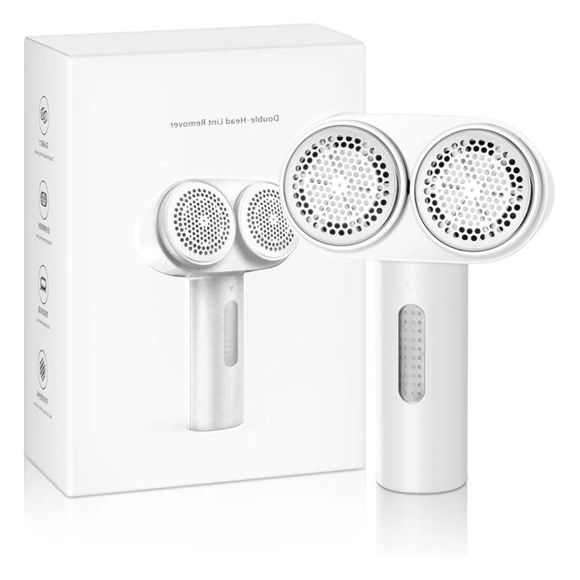 Liphier Rechargeable Fabric Shaver Lint Remover - Portable Doublehead Fuzz Shaver - White