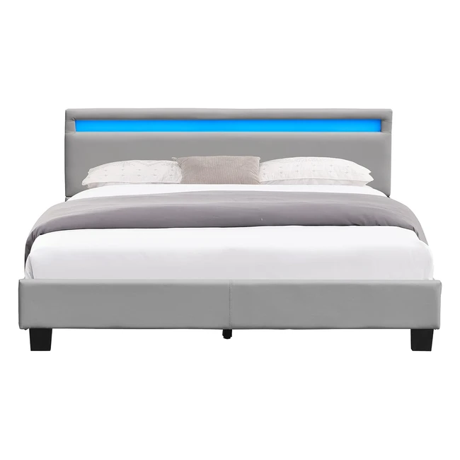Lit Angel 140x190 Solide et Confortable avec Sommier et Tête de Lit LED Gris