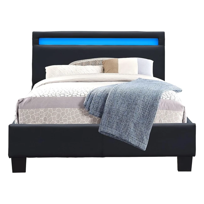Lit Angel 90x190 solide et confortable avec sommier, tête de lit avec éclairage LED - couleur noir