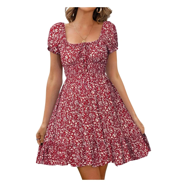 -19%Get ready for summer with this stunning women's dress! Featuring a sweetheart neckline, puff sleeves, and a beautiful floral print, this high waist dress is perfect for a boho beach look. Available in wine red, size L. Shop now on Amazon.co.uk!