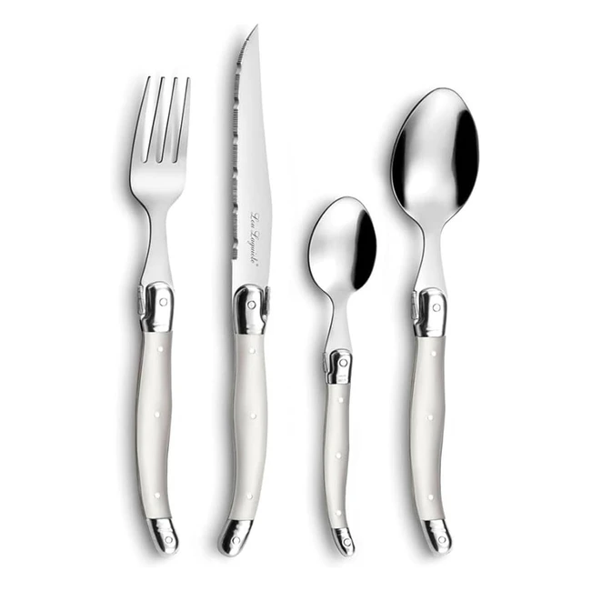 Lou Laguiole Tradizione - Servizio di Posate da 24 Pezzi - Acciaio Inossidabile - Perla Bianca