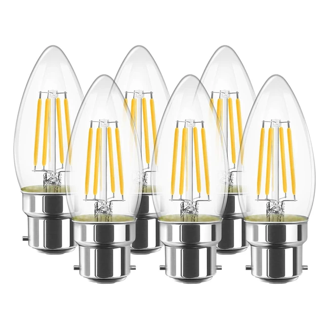 LVWIT 6W B22 LED Candle Filament Bulb - 60W Incandescent Bulb Equivalent - 2700K Warm White - C35 LED Bulbs - 806lm - Non-dimmable - 6 Pack