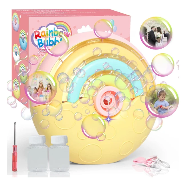 Macchina Bolle Bambini - Automatico Soffiatore Portatile - 2 Soluzioni Bolle - Illuminato - Cordino - 2000 Bolle al Minuto
