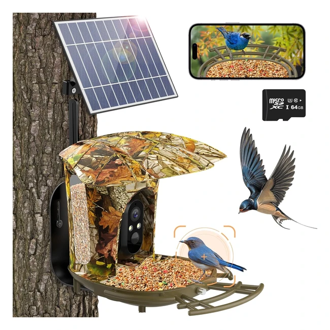 -21%Offre spéciale! Mangeoire à oiseaux avec caméra HD 1080p, grand angle 180°, vision nocturne, résistant aux intempéries, batterie longue durée, connexion wifi, stockage cloud gratuit. Profitez de l'observation des oiseaux en temps réel!