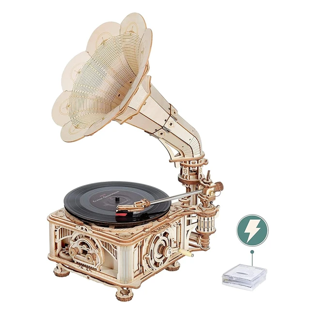 Maquette Rokr Puzzle 3D en Bois - Adultes et Enfants - Gramophone Classique - Kits de Modèles de Bricolage - Jouet de Construction Automatique et Manuel - LKB01D