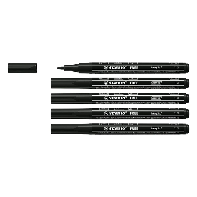 Marqueur acrylique Stabilo Free Acrylic T100 - Lot x 5 - Pointe fine - Noir