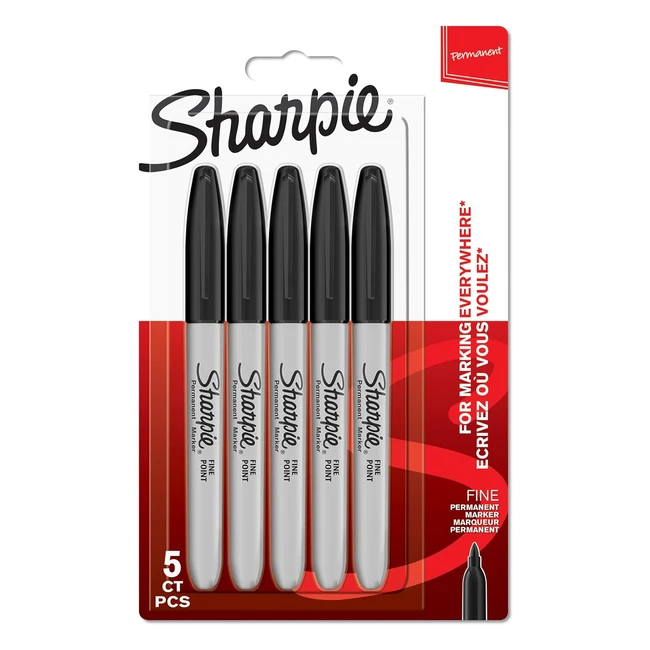 Marqueurs indélébiles Sharpie pointe fine, encre noire permanente, lot de 5