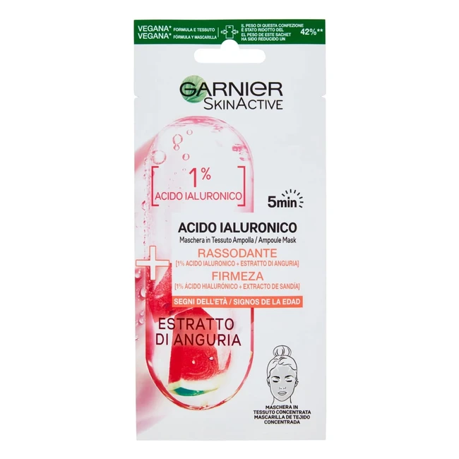 Maschera Garnier Ampolla Rassodante Anguria e Acido Ialuronico - Riduce Rughe - 5 Minuti