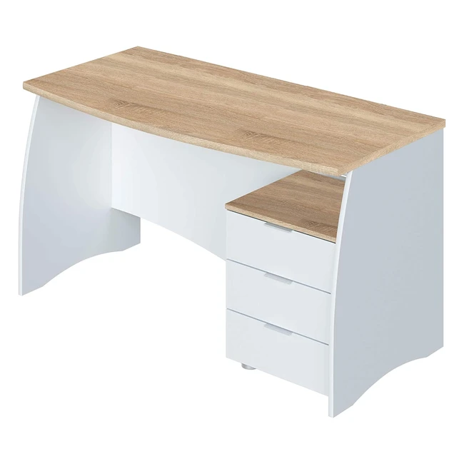 Mesa de Despacho Stil con 3 Cajones - Blanco Artik y Roble Canadian - 136x67x74 cm