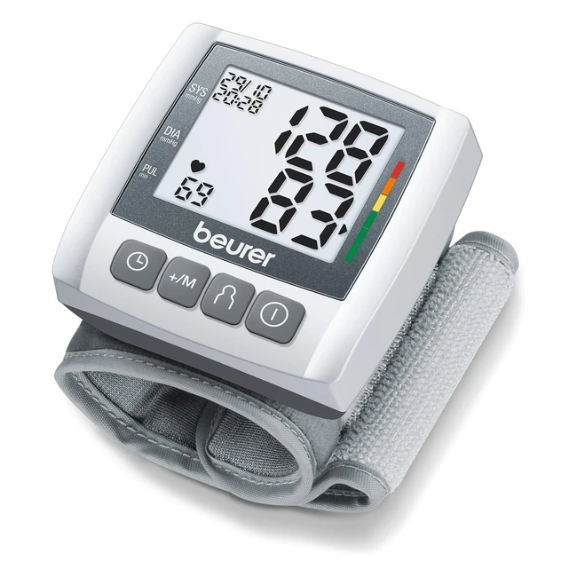 -10%Acquista subito il misuratore di pressione da polso Beurer BC 30 con 120 posizioni di memoria e rilevazione aritmie. Schermo leggibile, avviso di rischio e errore, adatto a polsi da 135 a 195 cm. Include custodia e batterie. Garanzia 3 anni.