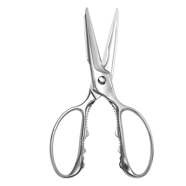 Forbici da cucina super affilate in acciaio alimentare 14116 al molibdenovanadio, design seghettato per tagli precisi. Ideali per tagliare pollo, carne e ossa. Impugnatura ergonomica, facile da pulire e mantenere. Realizzate con materiali di alta qualitĂ  e tecnologie avanzate. Acquista ora!