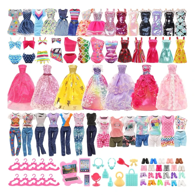 Miunana 3 vestiti grandi, 3 vestiti pailettes, 4 vestiti alla moda, 4 abiti, pantaloni, 3 costumi da bagno, 5 mini vestiti, 22 accessori, 15 pcs scarpe per bambola 30 cm