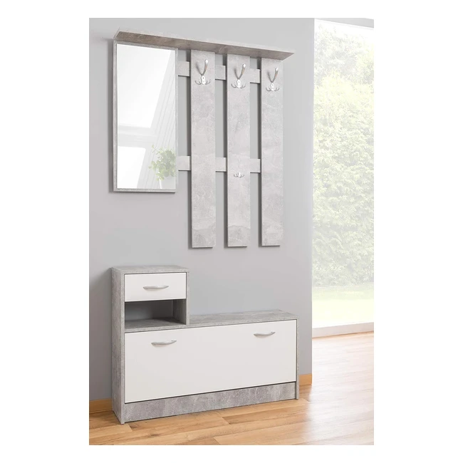 Mobile Ingresso Clint - Moderno e Multifunzione - Bianco e Cemento - 100x25h180 cm