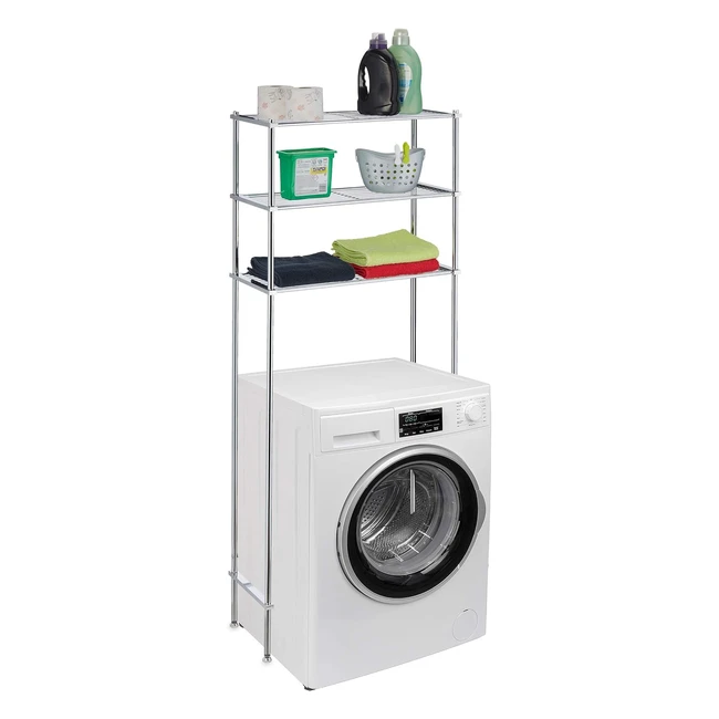 Mobile per lavatrice Relaxdays, 3 scaffali, HxLxP 1625x67x30 cm, argento