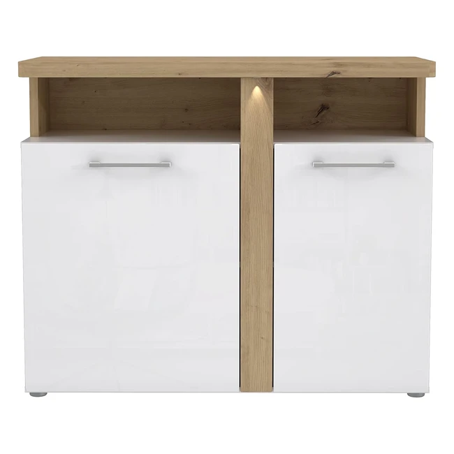 -19%Entdecken Sie die elegante Forte Tuluza Kommode mit hochglanzweißen Fronten und offenem Stauraum. Inklusive Beleuchtung und chromfarbenen Metallgriffen. Bestellen Sie jetzt und verleihen Sie Ihrem Zuhause einen Hauch von Luxus!