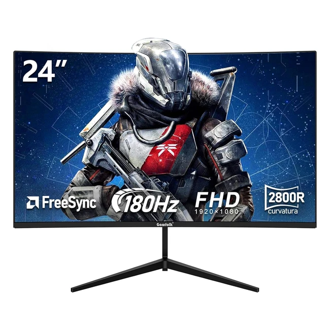 Monitor di gioco curvo 24 pollici 180Hz - Gawfolk 100 sRGB FHD 1080p 1ms Freesync