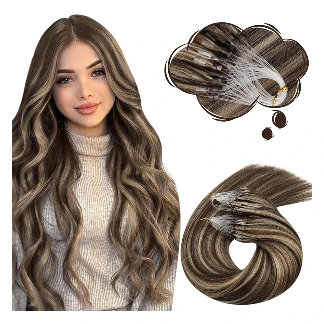 Moresoo Extension Capelli Veri Marrone 4 Punti Salienti con Biondi 27 Microring 50 Ciocche 50g 18 Pollice