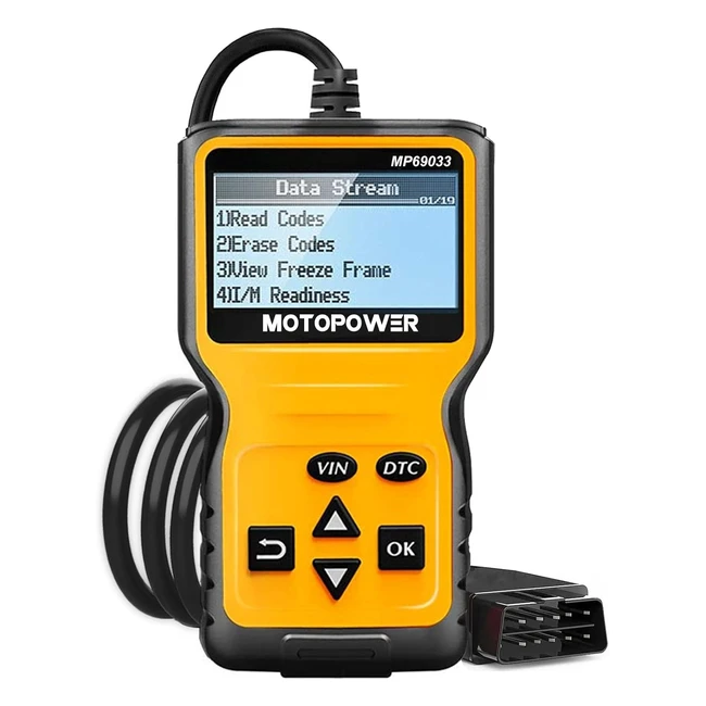 Acquista subito il lettore codici OBD2 multifunzione Motopower MP69033! Scopri la causa della luce motore, visualizza dati in tempo reale, supporta 9 protocolli auto, 6 lingue, display LCD chiaro, alimentazione diretta veicolo, garanzia 2 anni. Clicca e acquista ora!
