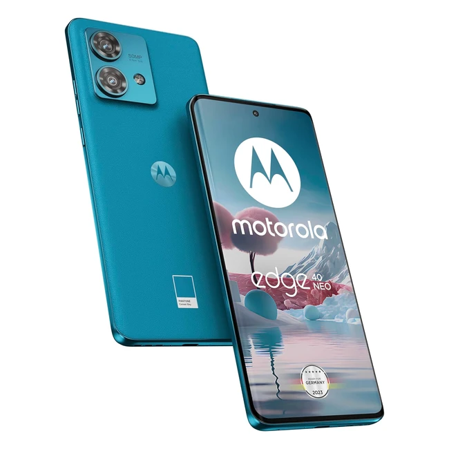 Motorola Moto Edge40 Neo Smartphone, 655FHD-Display, 50MP-Kamera, 12/256 GB, 5000 mAh, Android 13, Caneel Bay, inkl. Schutzcover, Kfzadapter