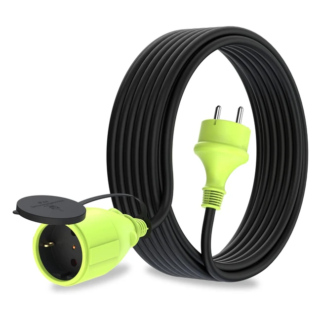 -5%Cavo di prolunga esterno impermeabile da 10 metri con spina Schuko angolata a 90°. Resistente al caldo e al freddo, ideale per illuminazione del giardino, attrezzi elettrici da giardino e altro. Connettore IPX4 per protezione completa. Alta qualità e design verde brillante. Garanzia di soddisfazione.