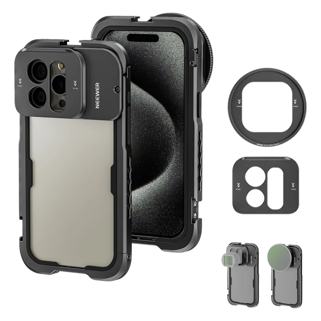 -15%¡Protege tu iPhone 15 Pro Max con esta jaula de video ajustada y crea contenido de calidad! Instalación rápida y acceso completo a botones y puertos. Compatible con accesorios Neewer para una plataforma de video completa. ¡Mejora tus fotos y videos al aire libre con este estuche resistente de aleación de aluminio!