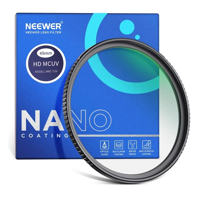 Neewer Filtre UV 49mm Protection UV Ultra Mince - Verre Optique HD Trempé - Cadre en Alliage d'Aluminium