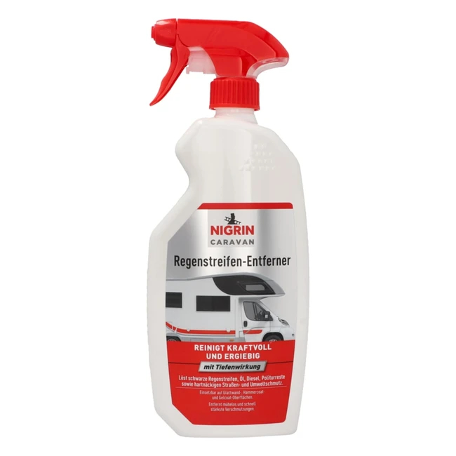 Nigrin Caravan Regenstreifenentferner für Lack und Kunststoffoberflächen und Böden entfernt Regenstreifen Öl Diesel Politurreste Straßen- und Umweltschmutz 750ml