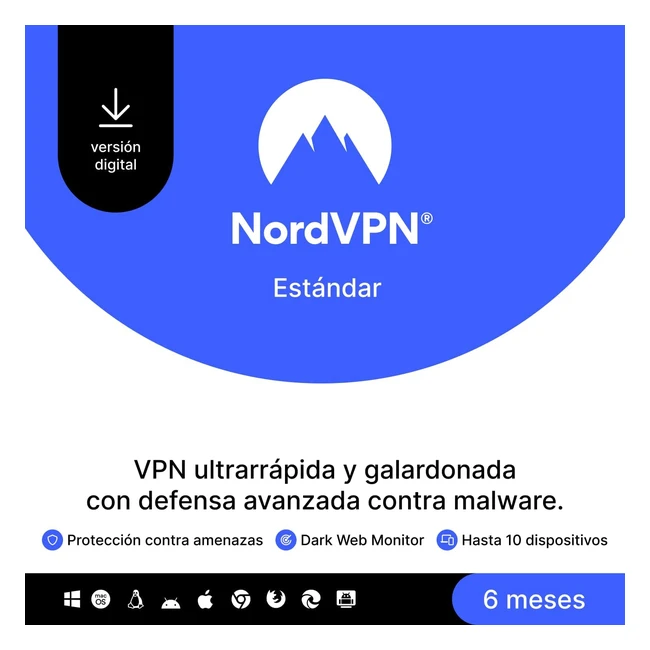 NordVPN Estándar - Suscripción 6 Meses VPN y Ciberseguridad para 10 Dispositivos