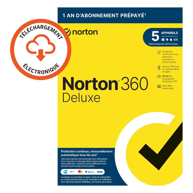 Norton 360 Deluxe 2024 - Abonnement 1 an pour 5 appareils