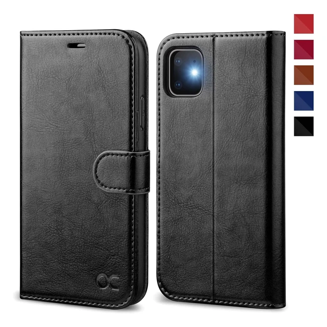 Ocase iPhone 11 Premium PU Leather Case - Kickstand, Card Holder, Wallet - Black