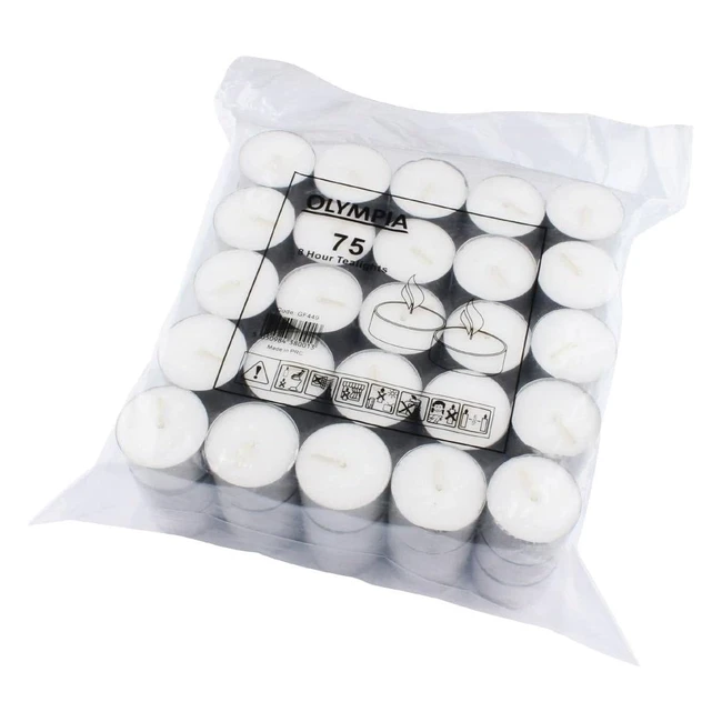 Olympia 8 Hour Tealights White Wax Candles Pack of 75 - Mood Lighting Essential