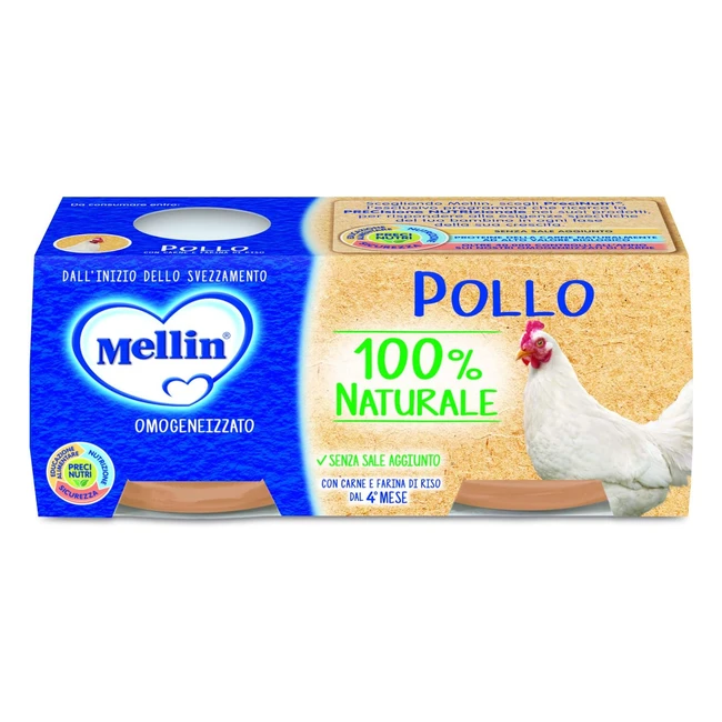 -8%Scopri l'omogeneizzato di pollo Mellin al 100% naturale! Confezione da 24 vasetti da 80g ciascuno, perfetti per una pappa sana e gustosa. Senza sale aggiunto e senza glutine, ideale per lo svezzamento del tuo bambino. Acquista ora!