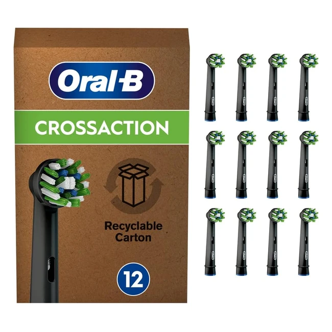 OralB Cross Action Electric Toothbrush Head Pack of 12 with CleanMaximiser Technology Angled Bristles