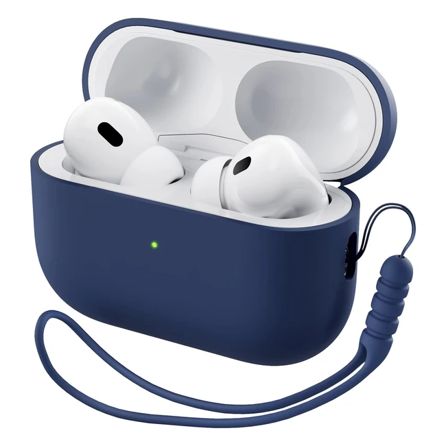 Ornarto AirPods Pro 2 Case 2022 Liquid Silicone Protective Case with Lanyard Navy Blue