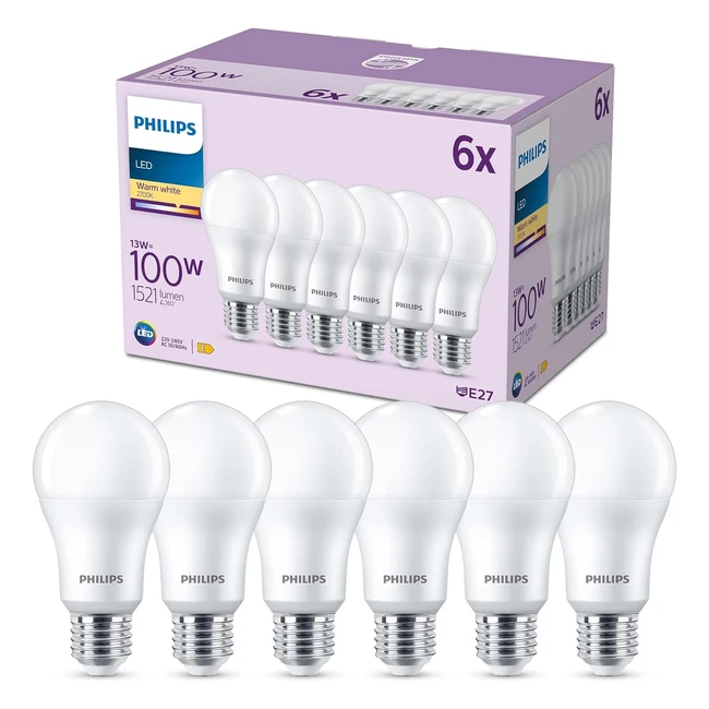 Pack de 6 ampoules LED Philips E27 100W Blanc Chaud - Économie d'énergie