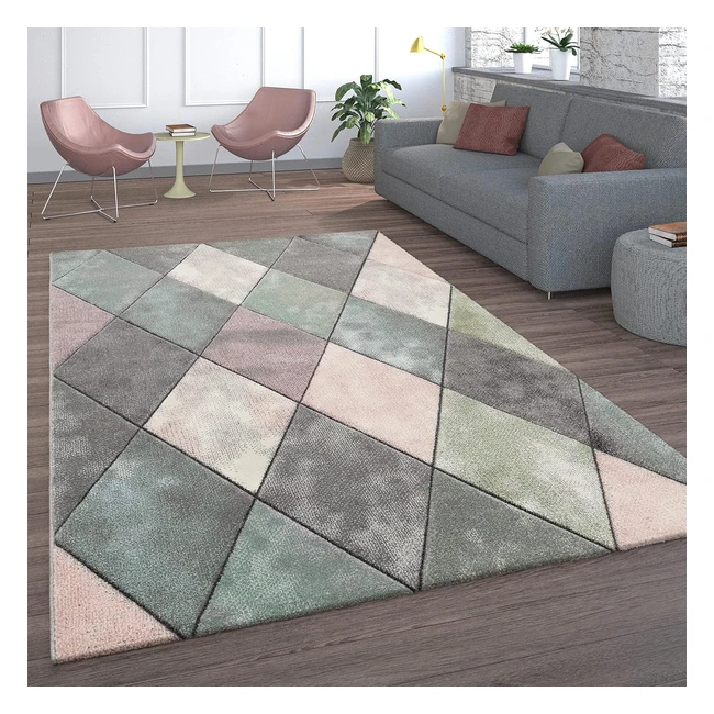 Paco Home Wohnzimmer Kurzflor Teppich Pastellfarben Pink Gelb 3D Muster