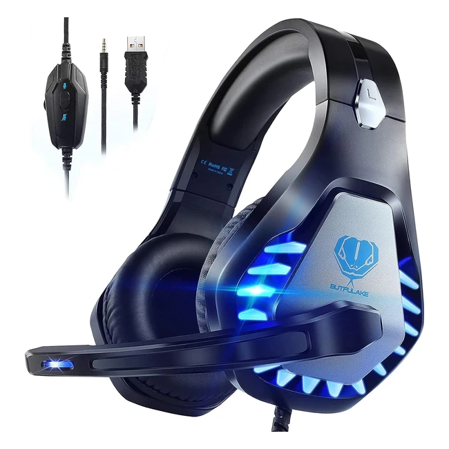 Pacrate Gaming Headset for PS4 PS5 PC Switch Xbox - Noise Cancelling Wired Headset with LED Light & Mic - Soft Memory Earmuffs