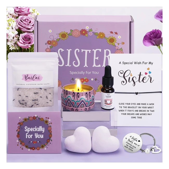 Pamper Spa Gift Set Lavender Essential Oil Candle Bath Bomb Salt Bracelet Key Ring Card