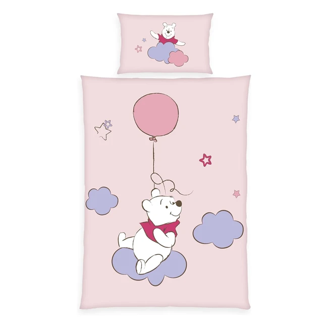 Parure de lit bébé Disney Winnie l'Ourson réversible - Taie d'oreiller 40x60 cm avec rabat - Housse de couette 100x135 cm fermeture éclair - Coton renforcé