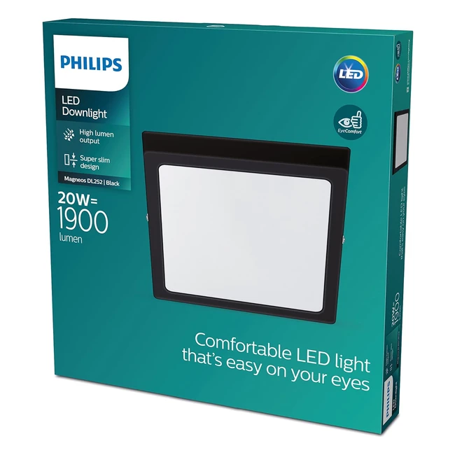 Philips Plafonnier LED Slim Surface Carré 20W Noir - Éclairage discret et subtil