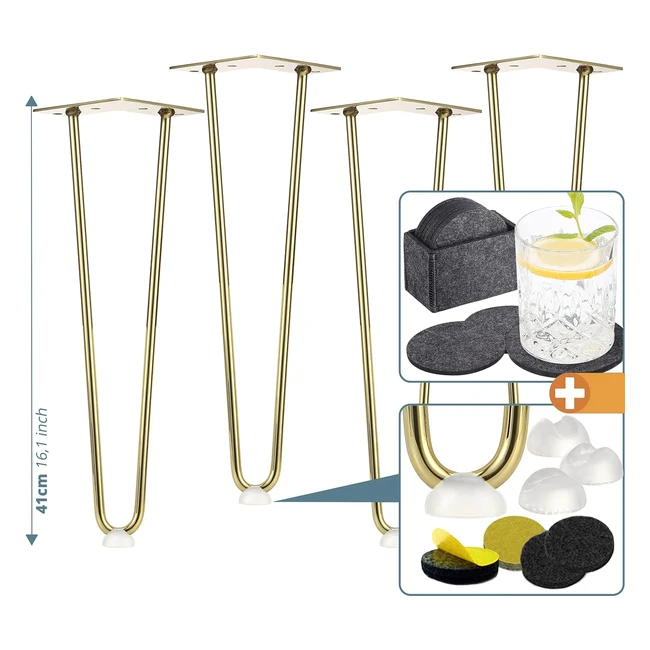 Pieds de table en pingle industriels or 41 cm - Smartpeas 4x avec montants et patins